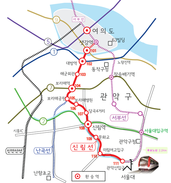 신림선 경전철 숙원 사업이 완공되면 지하철 9호선 샛강역 국철 대방역 7호선 보라매역 2호선 신림역 등 4개 정거장에서 환승이 가능해지는 만큼 출. 퇴근 시간에 혼잡했던 지하철 2.9호선 이용불편이 크게 개선될 것으로 분석된다.