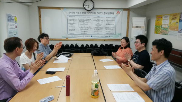 [제2기 준비모임을 진행하며, 안건을 박수로 마무리 하고 있다.]