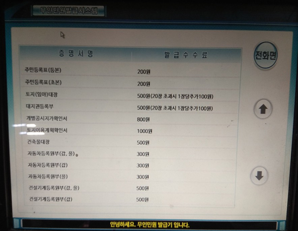 하지만 오후 6시까지 이용이 가능한 주민센터와 세무서에 설치된 무인민원발급기는 이와 같은 기능을 모두 사용할 수 있습니다. 특히 장애인 키패드와 시각장애인 음성 안내, 청각장애인 표지판 안내, 점자라벨, 화면확대, 촉각 모니터 등의 기능을 휠체어를 탄 채로 이용할 수 있습니다.